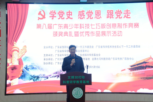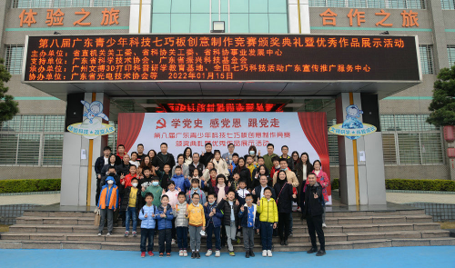 在广东省科学技术协会、广东省振兴科技基金会的大力支持下,由广东省直属机关关心下一代工作委员会、广东省科学技术协会关心下一代工作委员会、广东省科学技术协会事业发展中心(原广东省青少年科技中心)共同主办的“学党史 感党恩 跟党走”—第八届广东青少年科技七巧板创意制作竞赛颁奖典礼暨优秀作品展示活动于2022年1月15日在广东省直机关关心下一代工作活动基地—广州文搏3D打印科普研学教育基地举行。